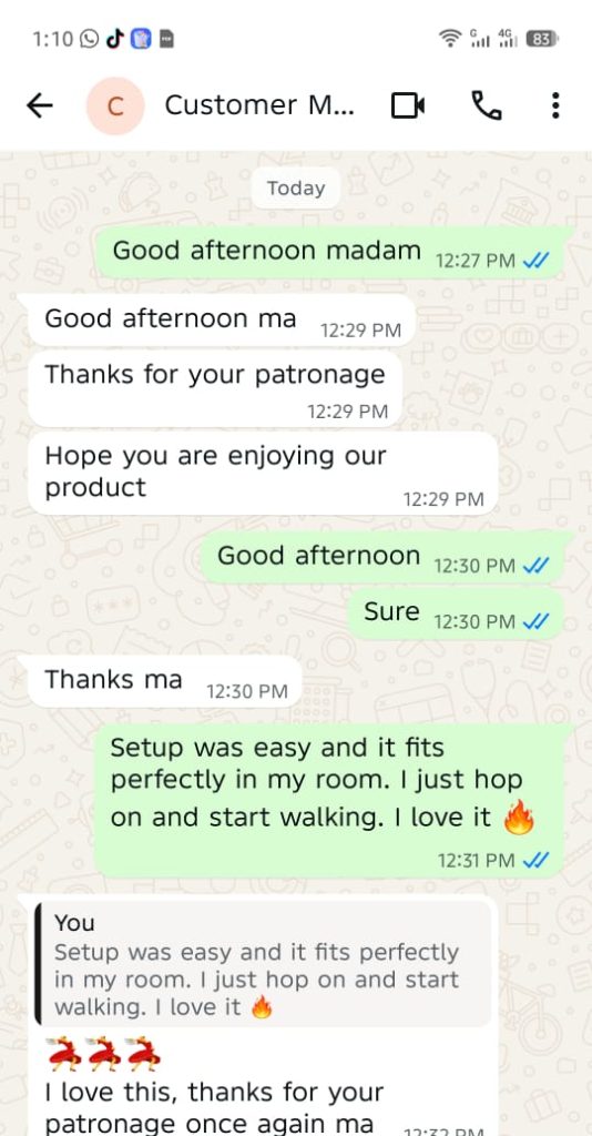 “I was worried about durability, but this treadmill is strong and stable. It handles my weight comfortably and gives me confidence every time I step on it.”